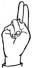 На ћирилици написано ЈЕЛИСАВКА ГЕОРГИЈЕВ састоји се из 18 слова [?]. Исписано ћириличном једноручном азбуком за глувонеме: